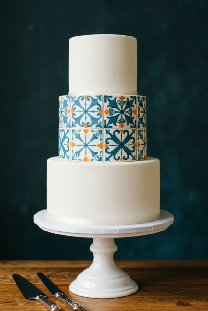 Turn a timeless wedding cake into a work of art with a minimalist, contemporary design featuring edible Mexican tile patterns.