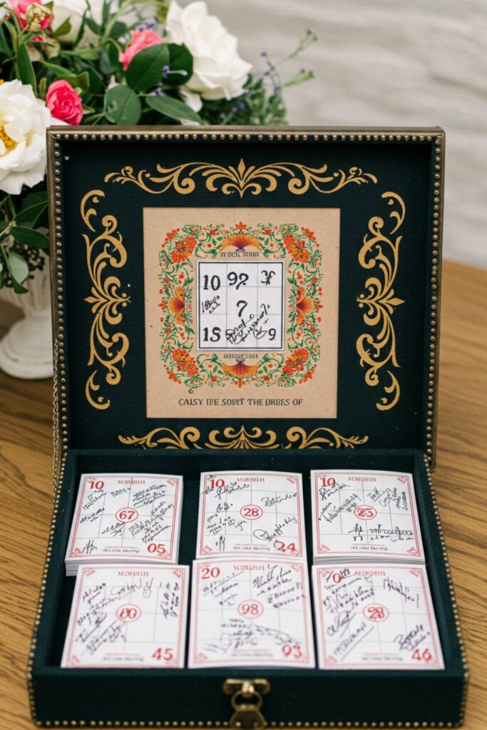 Transform your guest book into a fun and unique keepsake by using custom lotería cards.