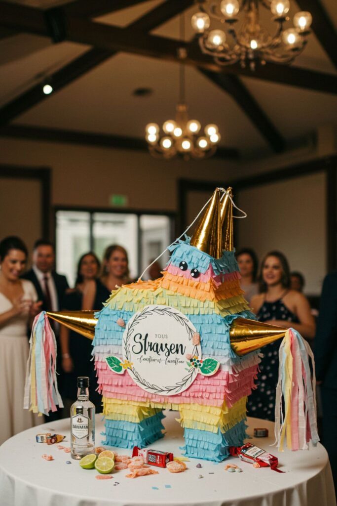 Fill it with gourmet candies, artisanal treats, or even mini tequila bottles for a playful reception activity that guests of all ages will love.
