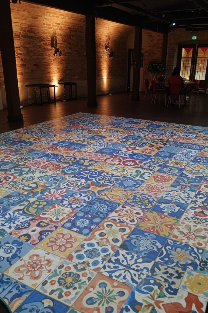 Transform your dance floor into a vibrant masterpiece with a bold, colorful tile pattern inspired by traditional Mexican designs.