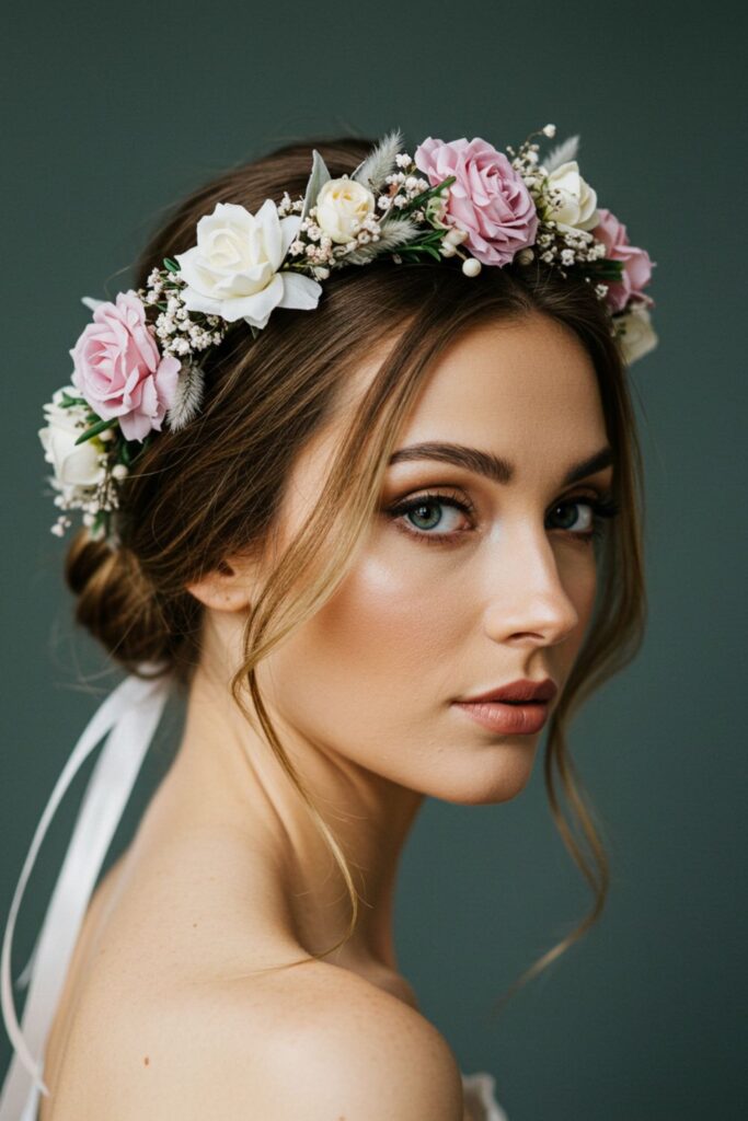 This understated twist keeps the crown traditional yet trendy, perfect for both brides and bridesmaids.