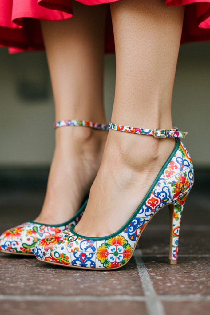 Choose shoes adorned with colorful Mexican tile patterns or intricate embroidery details, bringing a bold yet elegant flair to your bridal look.