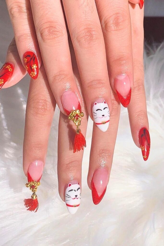 21. Lucky Maneki-Neko Cat Nails