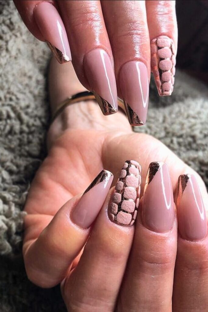 22. Nude and Bronze Textured Nails