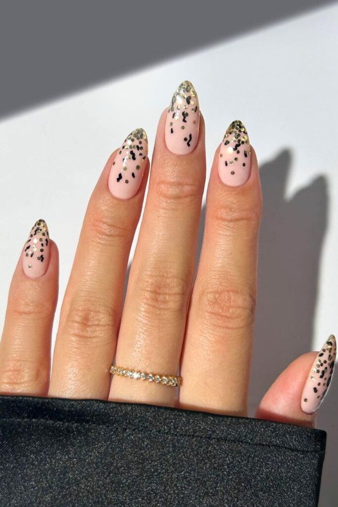 11. Black and Gold Confetti French Tips