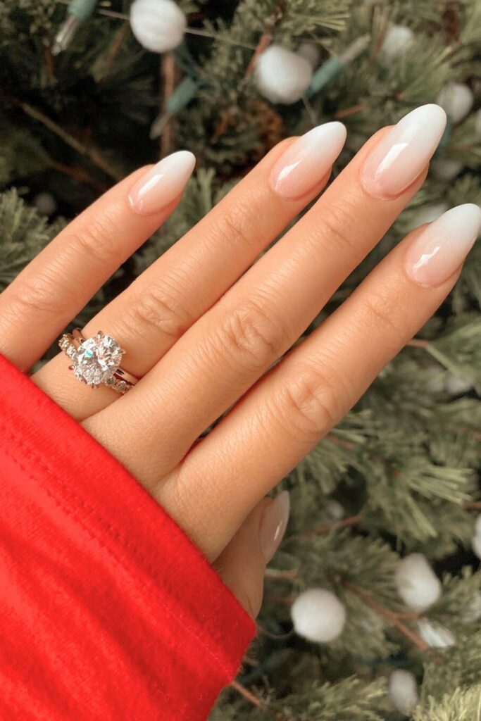 Step into elegance with Soft White Ombre Nails – the perfect choice for a sophisticated New Year’s Eve look.