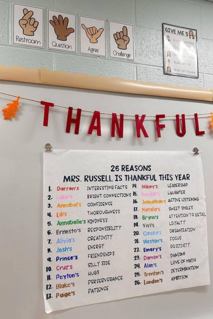 This colorful display not only adds a festive touch but also fosters gratitude and reflection in the classroom.