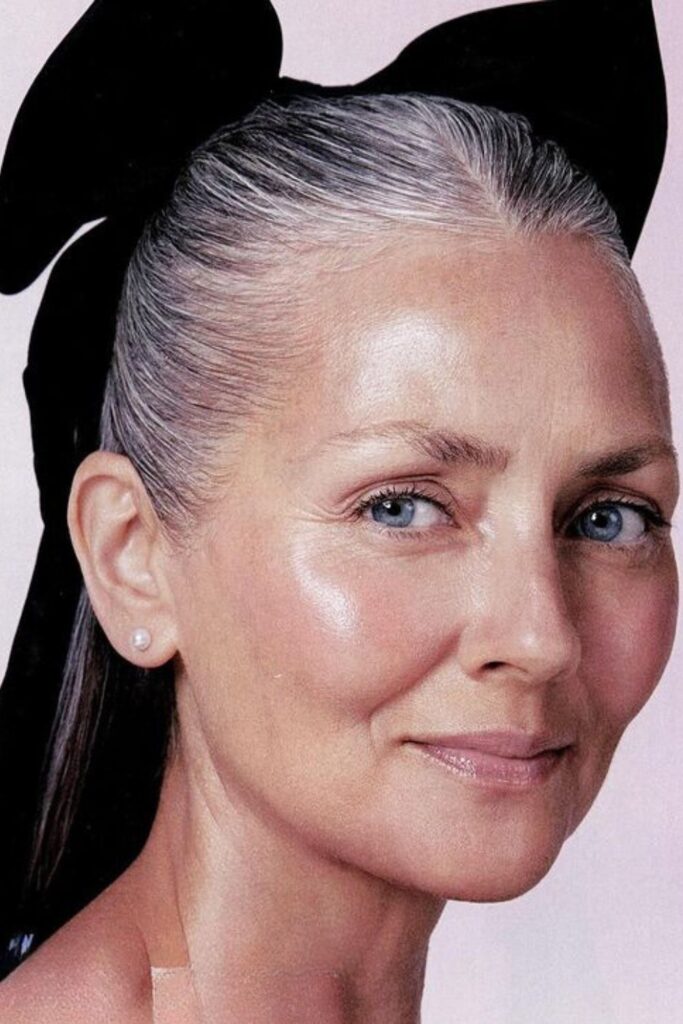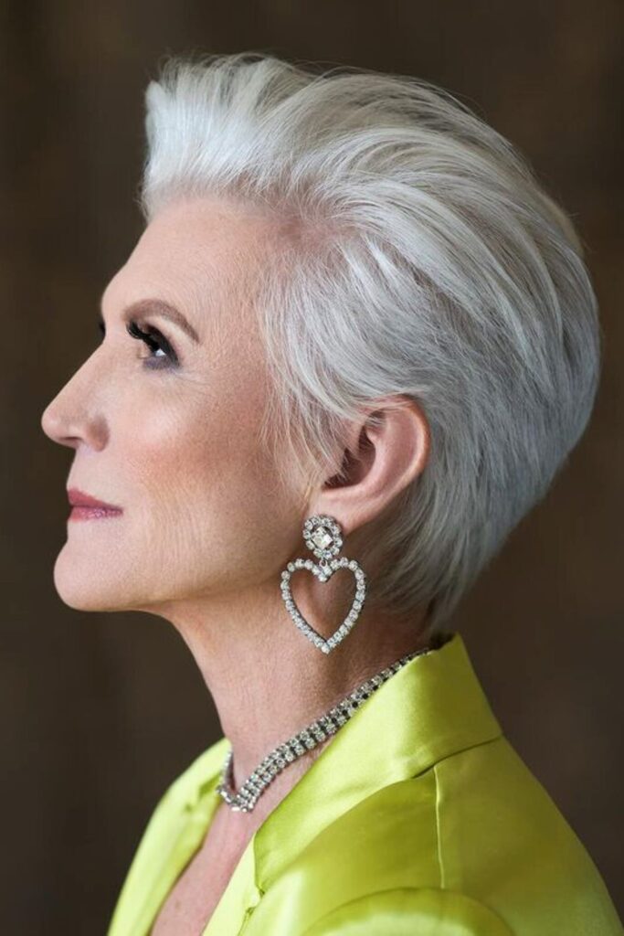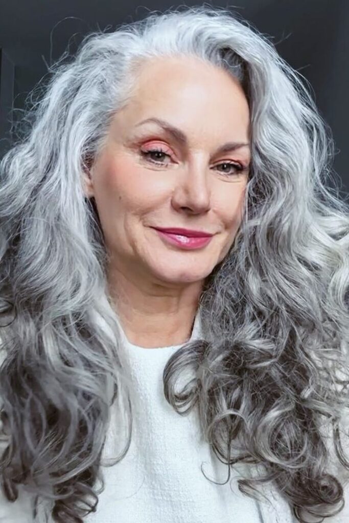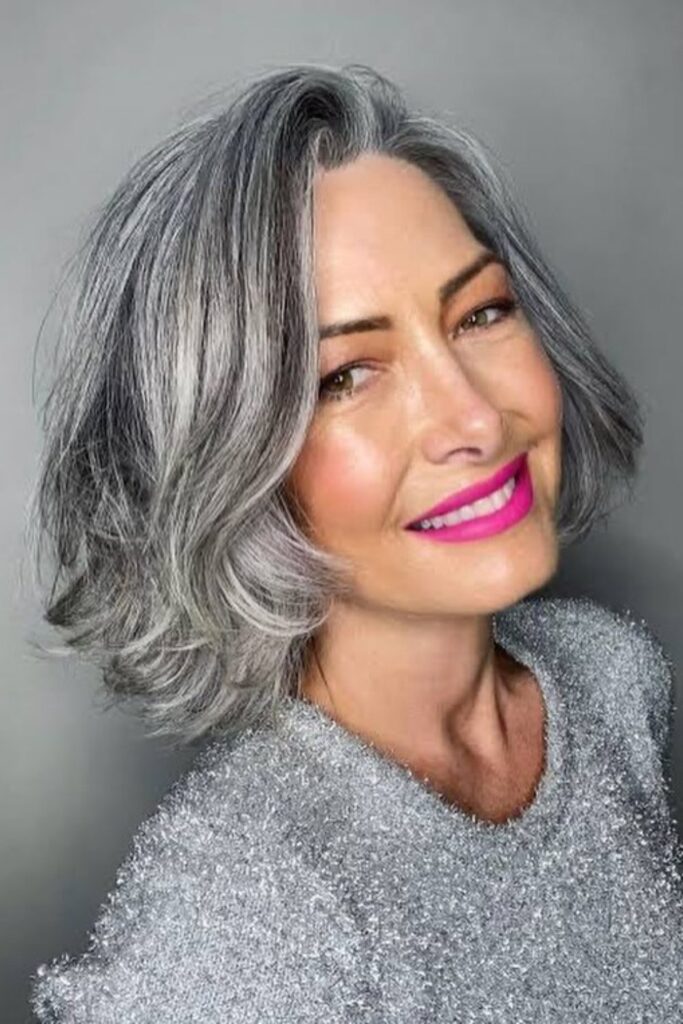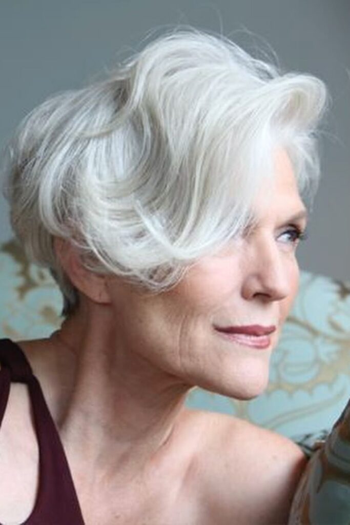 This hairstyle works wonderfully with gray or silver hair, offering a glamorous yet natural appearance.
