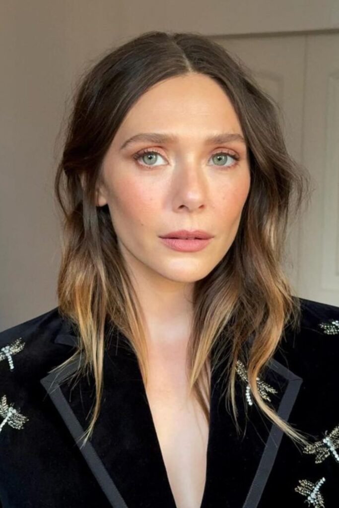 This soft wavy hairstyle combined with a middle part offers timeless elegance and a modern edge. The subtle waves add gentle movement to medium-length hair, creating an effortlessly chic appearance.