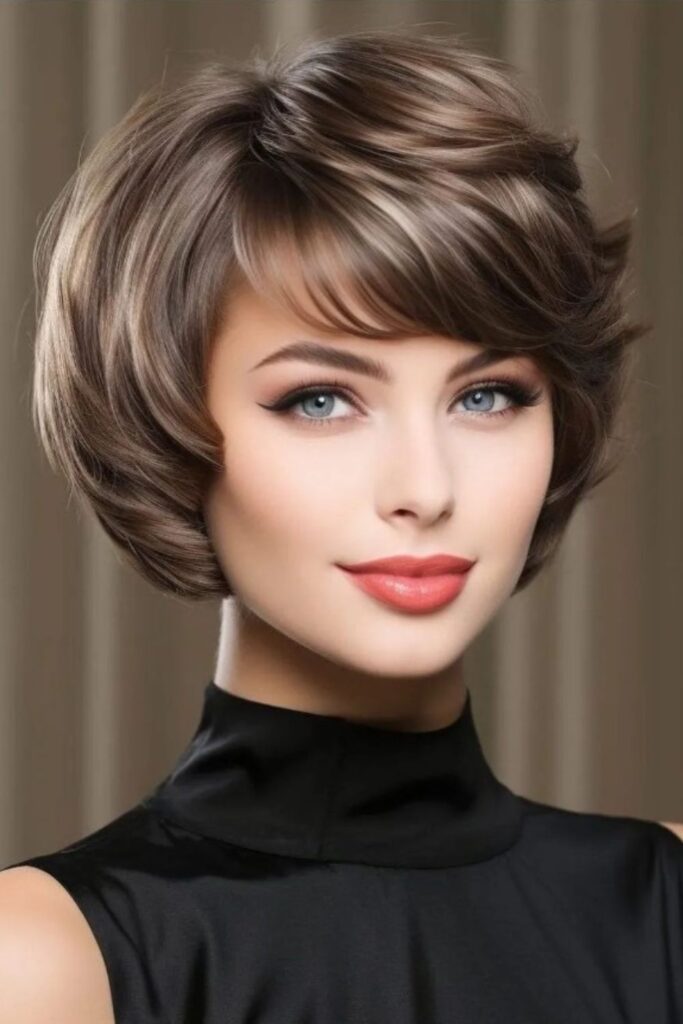 Embrace timeless elegance with a playful twist by opting for a soft side-swept bob. This style features soft waves and side-swept bangs that frame the face beautifully, creating a sense of movement and charm.