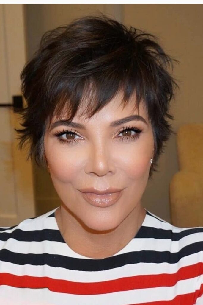 The short textured pixie with bangs is a bold choice for those who love to express their unique style.