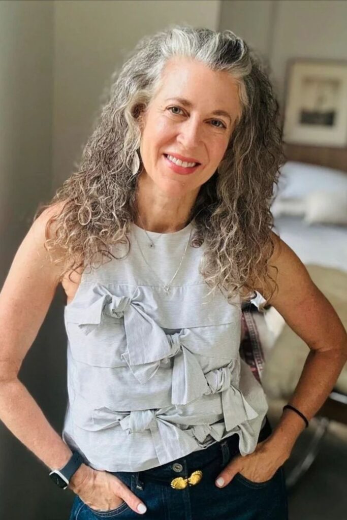 This method adds both volume and texture, ideal for women who desire a bold, lively look that embraces their natural curls and gray tones.
