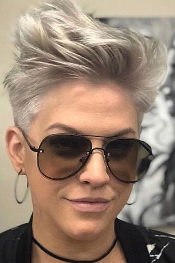 The edgy silver pompadour is an ideal choice for those ready to make a bold statement while flaunting their silver strands.