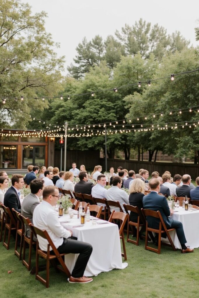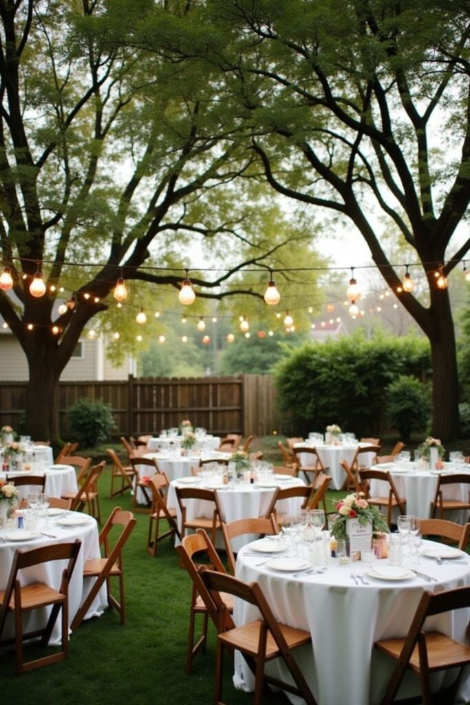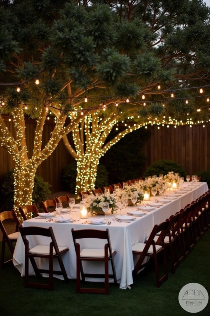 Wrap trees in warm, twinkling lights to create a magical starry night-inspired glow for your backyard reception.