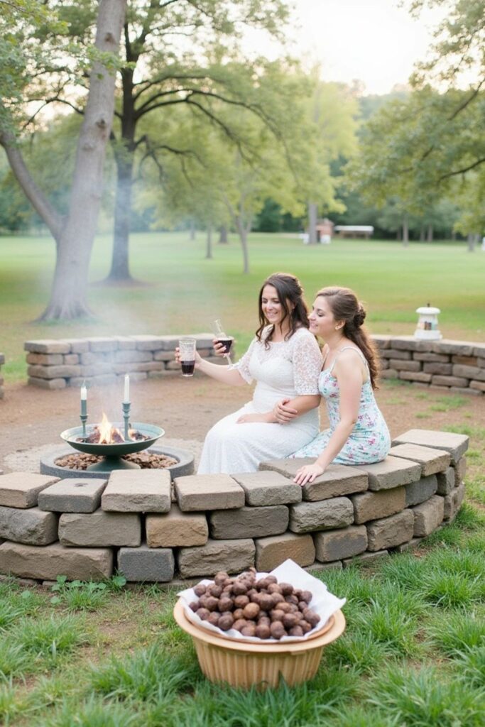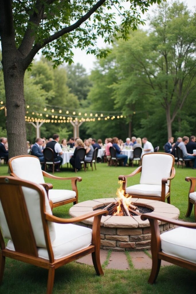 This setup invites guests to gather, relax, and toast marshmallows. The glow of the fire adds romance and makes for magical photos.