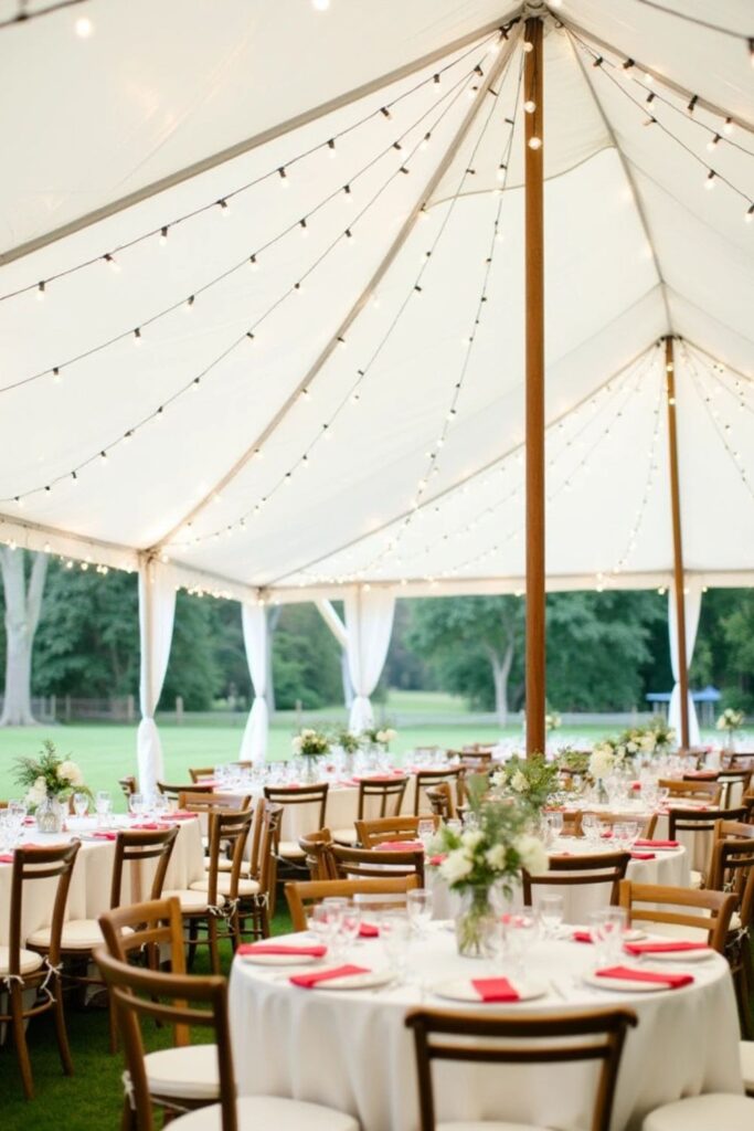 Create a magical atmosphere with a gorgeous tented dining area that offers both style and weather protection.