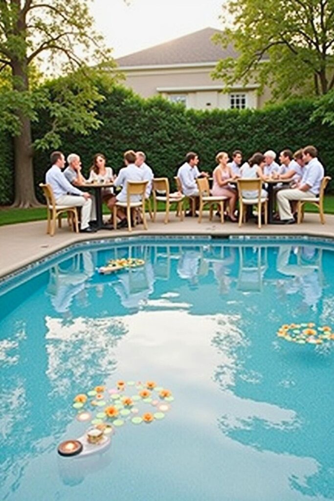 Place delicate flowers, glowing candles, or decorative lanterns on the water to create a dreamy effect. You can match the colors and style to your wedding theme.