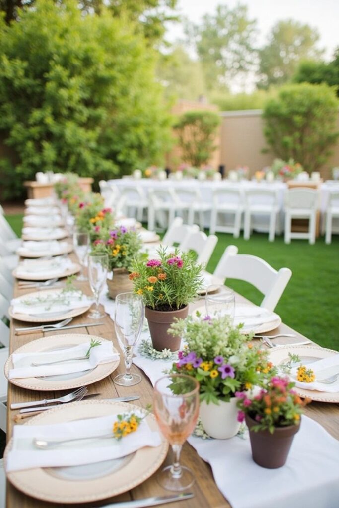 Arrange them as centerpieces or along walkways. These plants also double as memorable guest favors, letting loved ones take home a piece of the celebration.