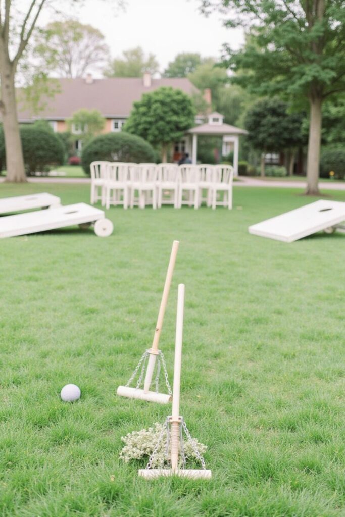 Bring a touch of nostalgia and fun to your reception with charming lawn games like croquet, bocce ball, or cornhole.