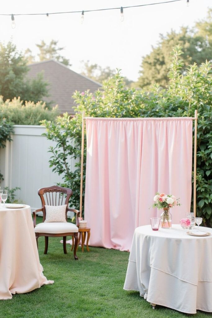 Design a whimsical DIY photo booth that’s both fun and stylish. Use a gorgeous backdrop of draped fabrics, fairy lights, or even a flower wall.