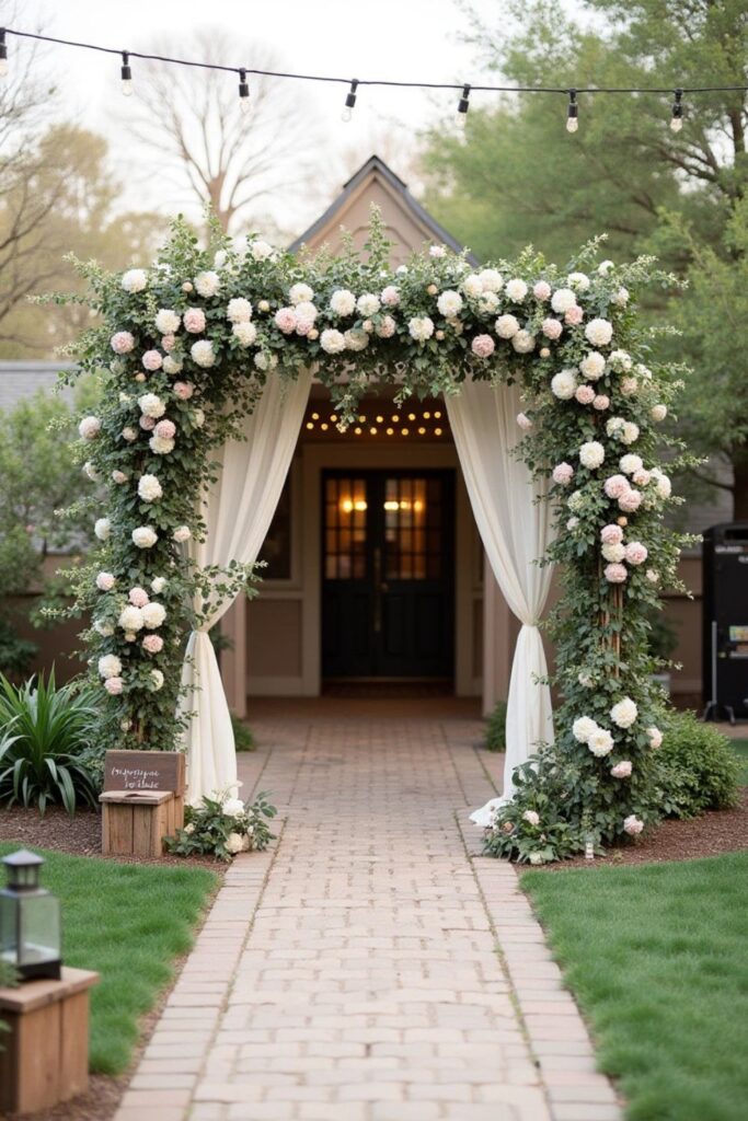 A well-lit pathway or archway draped in elegance adds to the charm. This stunning entryway sets the tone for a reception filled with romance and wonder.
