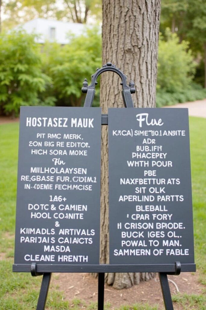 Perfect for showcasing menus, event schedules, or seating arrangements, these signs add a personal, handmade vibe. Place them at key spots like the entrance or buffet table.