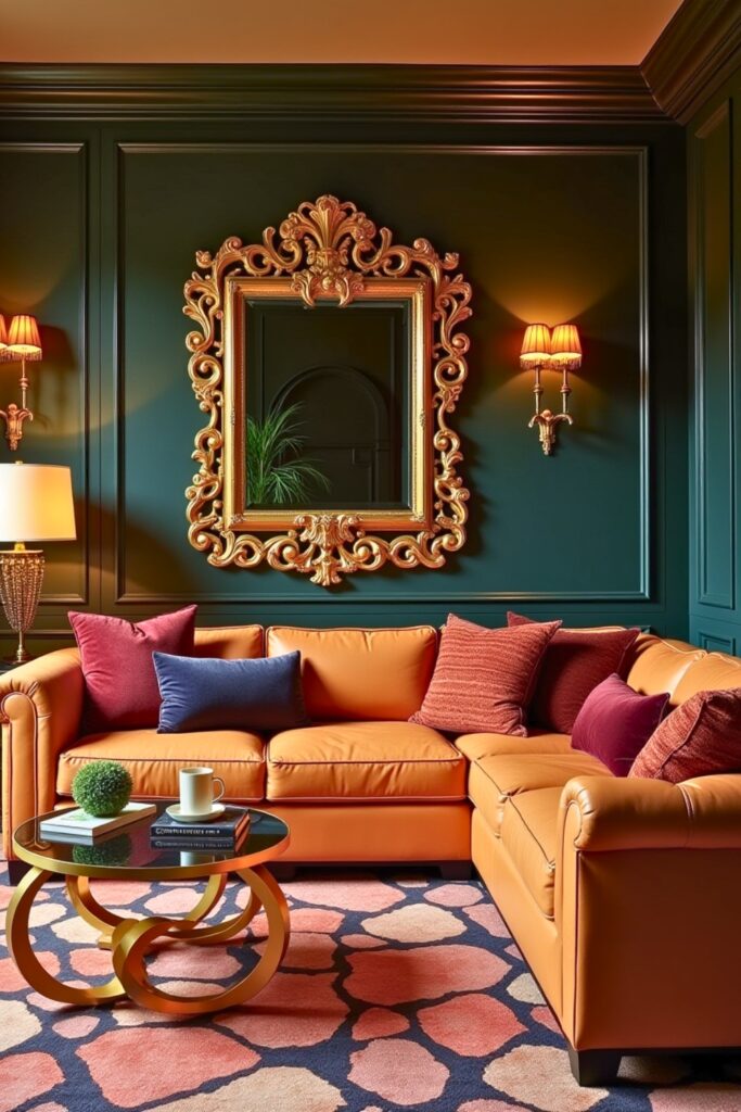 Incorporate brass or gold accents in lighting fixtures or a coffee table to add a touch of opulence. A statement mirror or abstract artwork will create visual interest and drama.