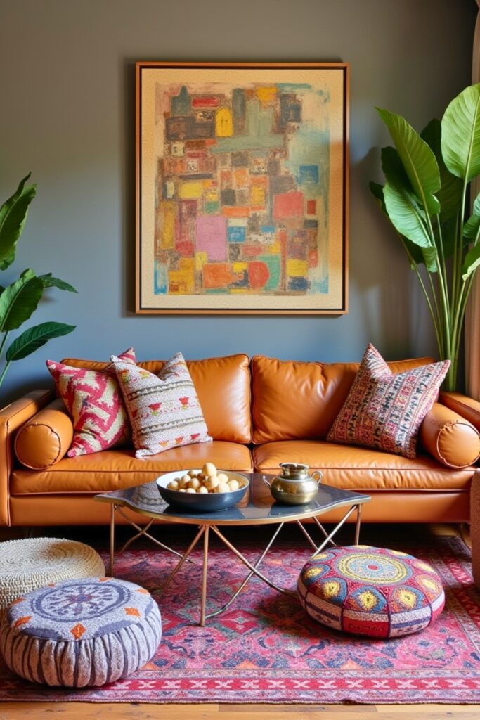Bring the world to your living room by combining decor from various cultures. Place a tan leather couch at the center and add Moroccan poufs, Turkish rugs, and tribal prints for a rich tapestry of global styles.