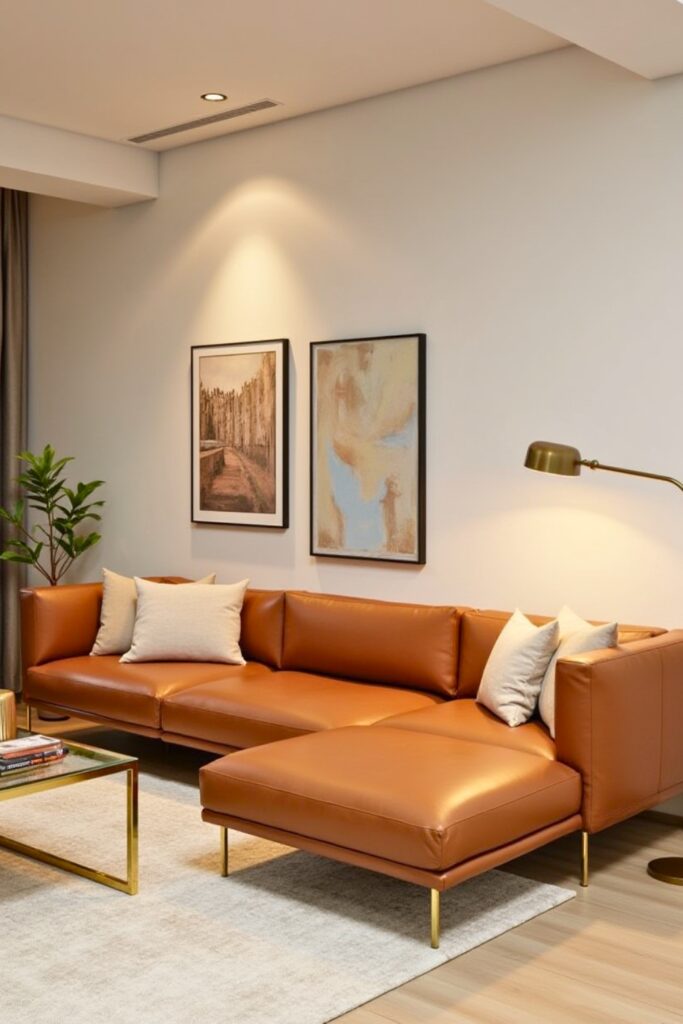 Craft a sleek, modern space by combining a tan leather couch with metallic accents such as gold or chrome.