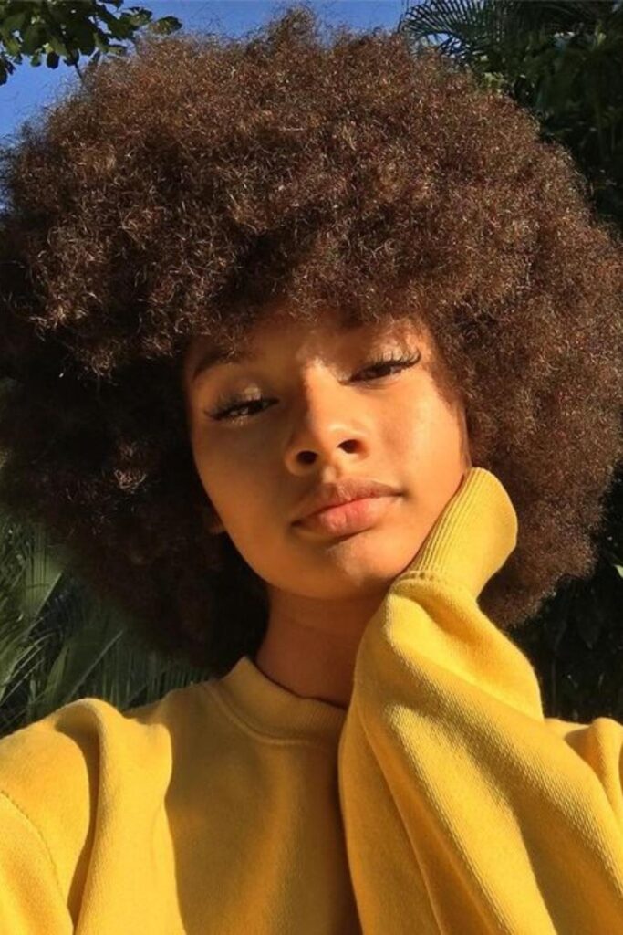 Celebrate your natural texture with a timeless afro that turns heads all winter long. This style embraces voluminous, tightly coiled hair, perfect for showcasing bold beauty. Begin by detangling your curls with a leave-in conditioner and a curl-enhancing cream.