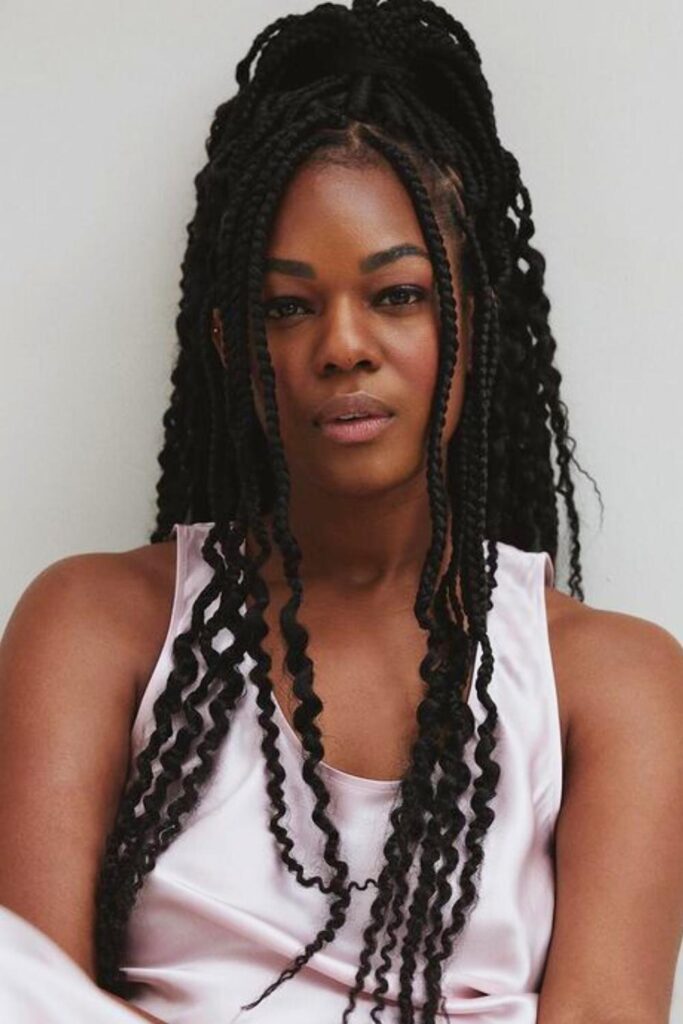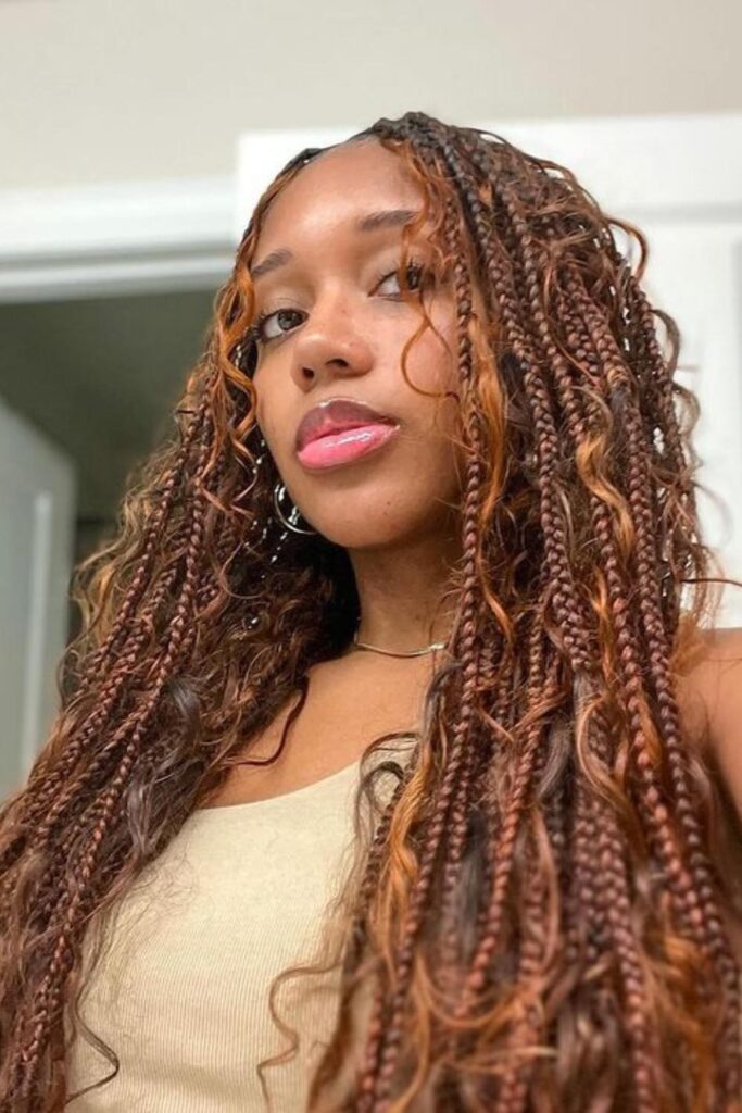 These waist-length box braids with highlights add both length and dimension to your look. Box braids are a popular protective style, and highlights bring extra flair. Start by braiding synthetic hair into sections of your natural hair.