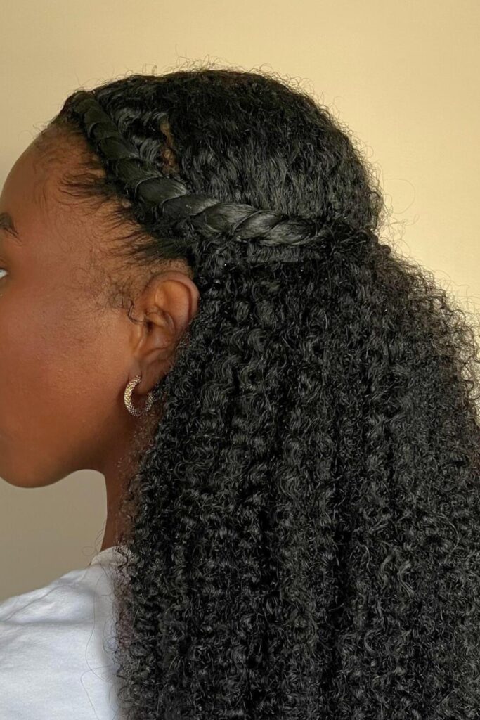 To create this style, braid loosely along the front hairline and secure it at the back, allowing curls to flow freely.