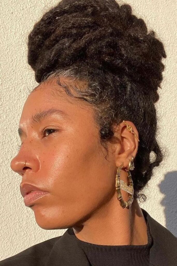 The high loc bun is a protective and sophisticated winter hairstyle, perfect for those with locs. Gather the locs into a high bun on the crown, creating a clean and elegant look.