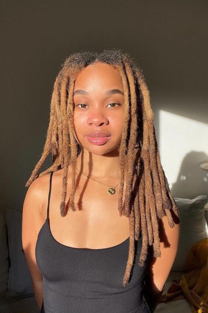 Blonde locs are a bold and stylish winter hairstyle that adds a pop of color to your appearance. Dye locs in a light blonde shade, creating a striking contrast with the natural roots. This can be done by dyeing natural locs or using pre-colored extensions.