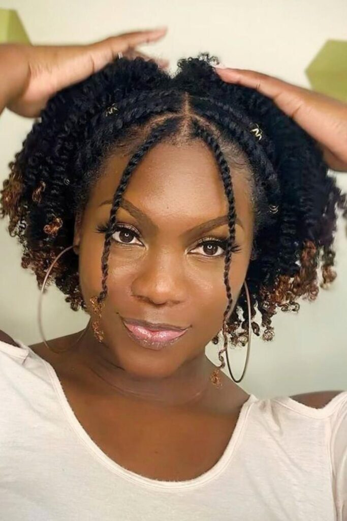 Embrace a short twist-out hairstyle this winter, perfect for style and simplicity. This look features twisted hair that’s unraveled to reveal defined curls with a soft, voluminous finish.