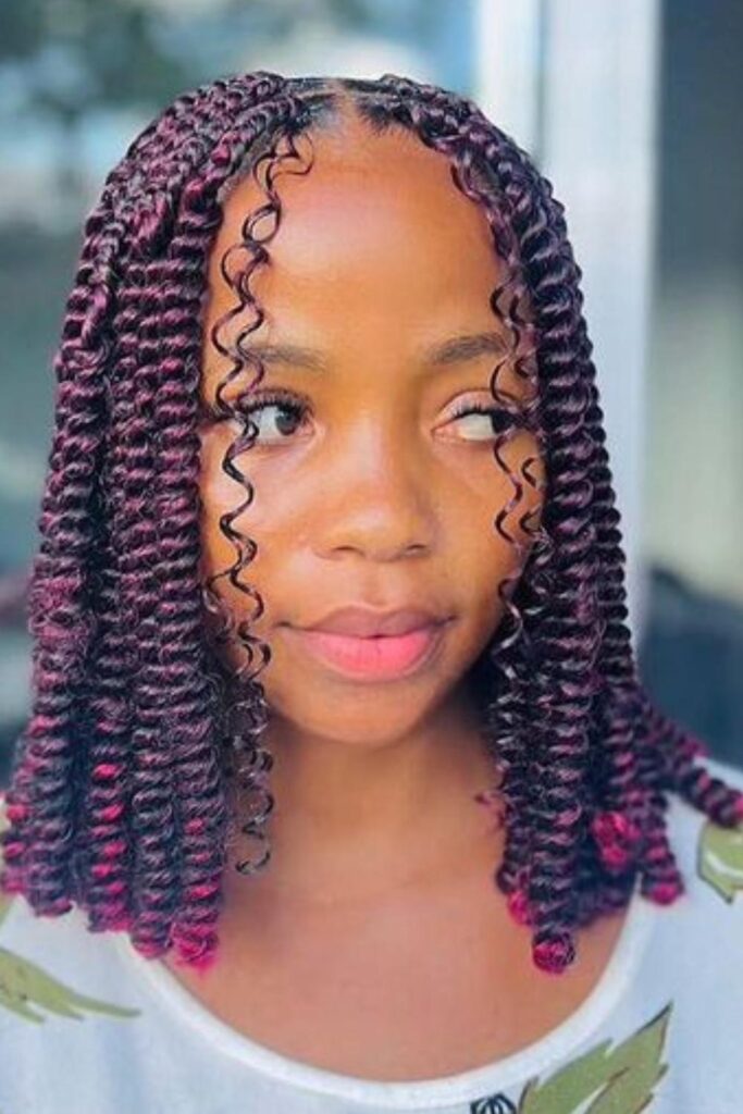 Achieve this chic look by twisting your natural hair or using extensions. Ensure the ends are coiled with a curling wand or flexi rods for a polished finish, giving your twists a refined appearance.