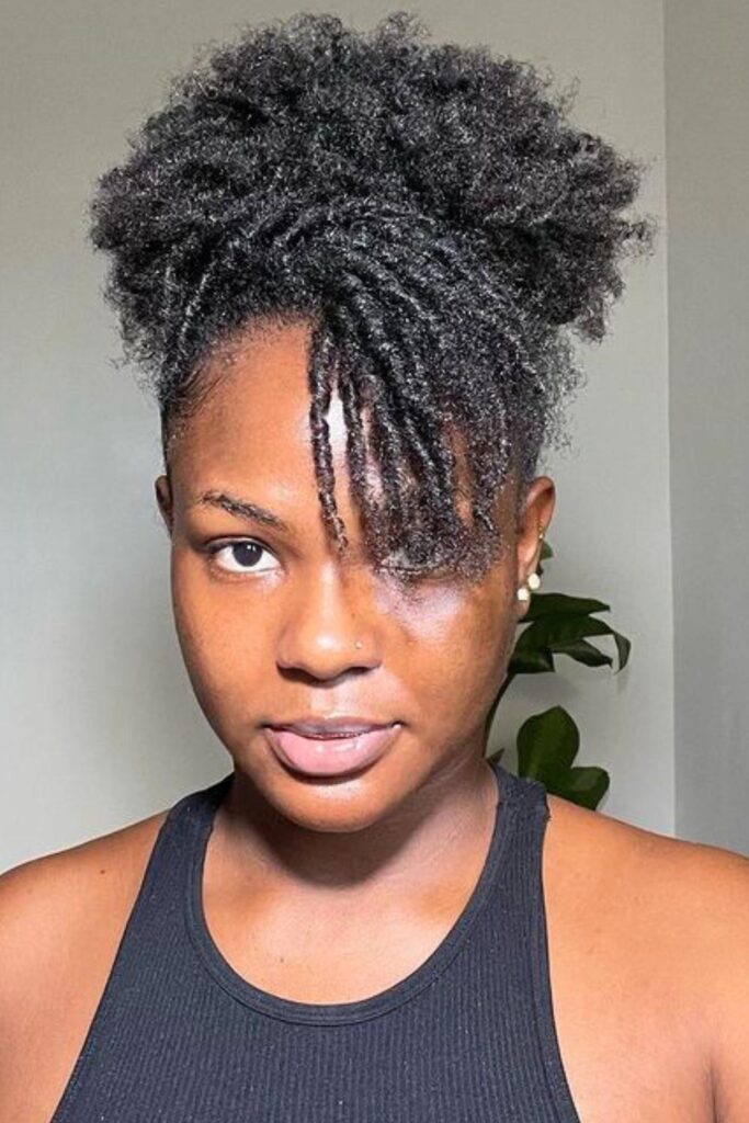 To achieve this style, gather the locs at the top and wrap them into a bun, securing them with pins if needed.