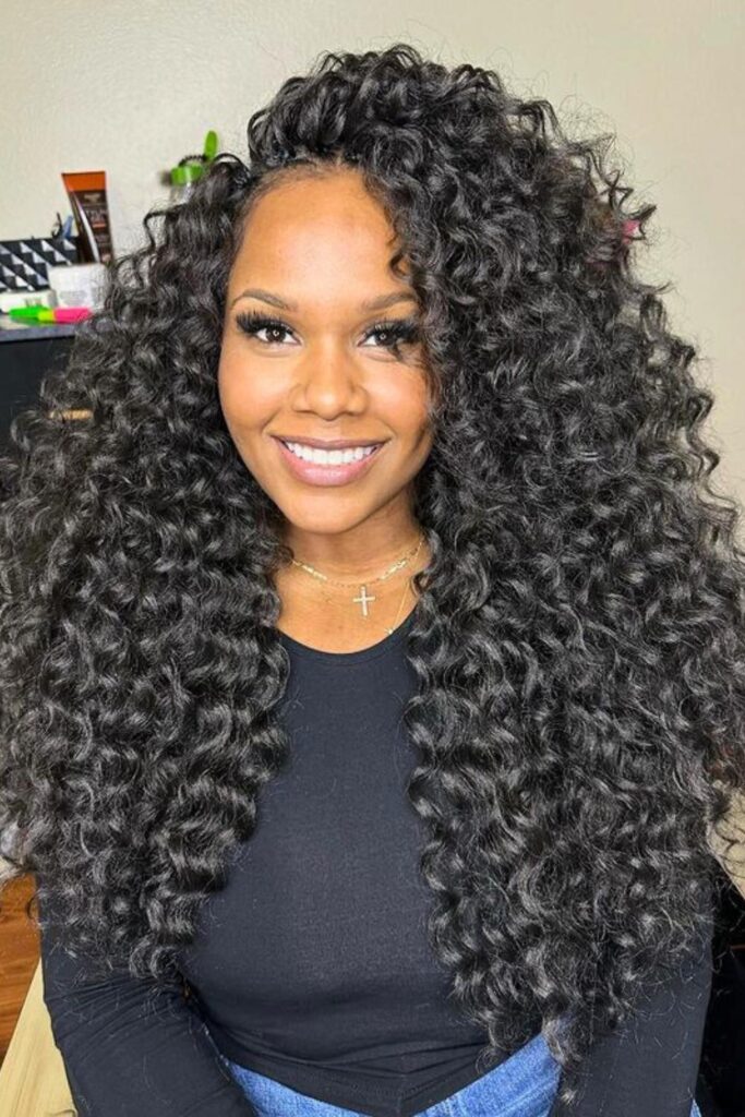 To achieve this dazzling look, start by installing a weave or wig with well-defined curls. Use a curl-defining cream or mousse to maintain the curls’ shape.