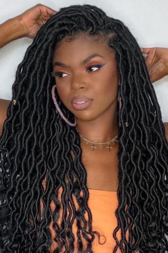 For a versatile and protective style, opt for long faux locs this winter. They offer the beauty of locs without the commitment, allowing for a boldelegant appearance. The locs are crafted using synthetic hair wrapped around your natural strands.