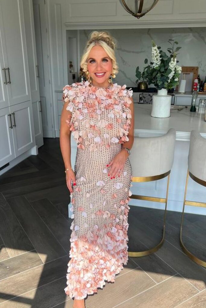 Pair it with white or nude heels and a matching clutch for a cohesive look.