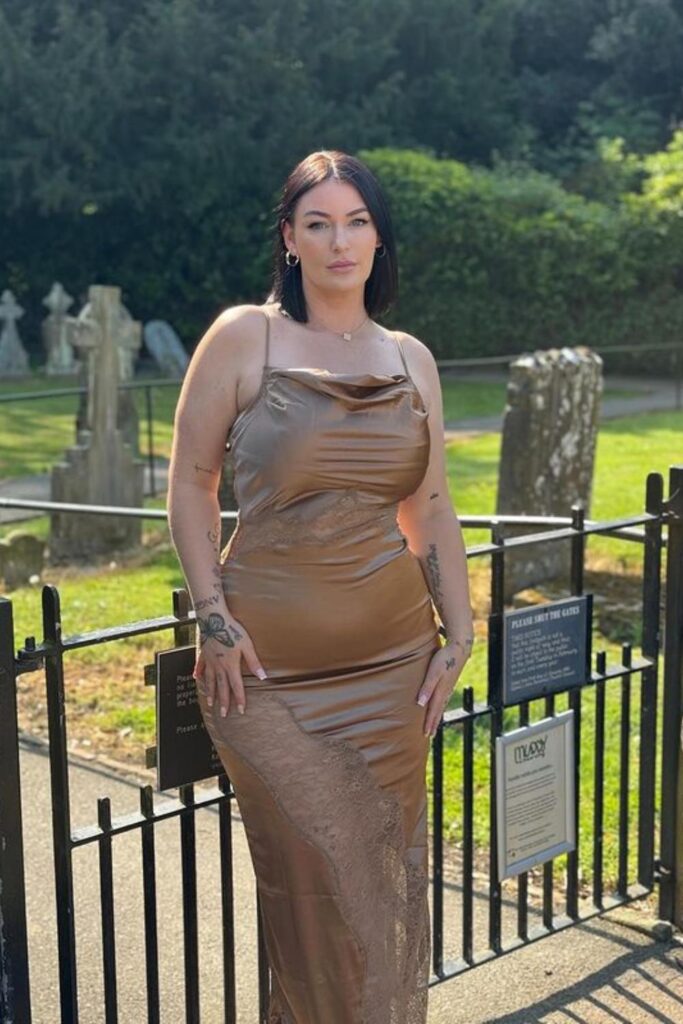 Step into elegance with the satin bronze slip dress, a masterpiece of sophistication. Its lustrous fabric and delicate spaghetti straps lend an air of refinement, while the draped neckline adds a soft, feminine touch.