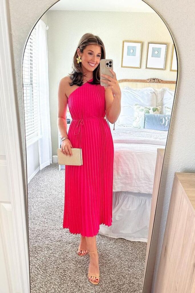 15. Asymmetrical One-Shoulder Hot Pink Dress